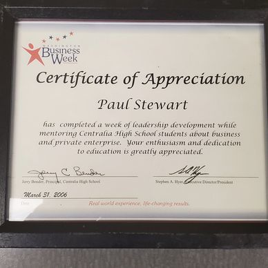 As an Advisor with the state's Washington State Business Week Program, mentored students of Centralia High School of Lewis County in Washington state, the development of business and enterprise development as it relate to Economic Development locally and nationally. Additionally held Education Forum within East Lewis County in conjunction with all the school districts of Lewis County ( White Pass, Morton, Mossyrock and Onalaska, along with Centralia College, all with the Superintendent of Public Instruction for Washington state, Terry Bergenson.